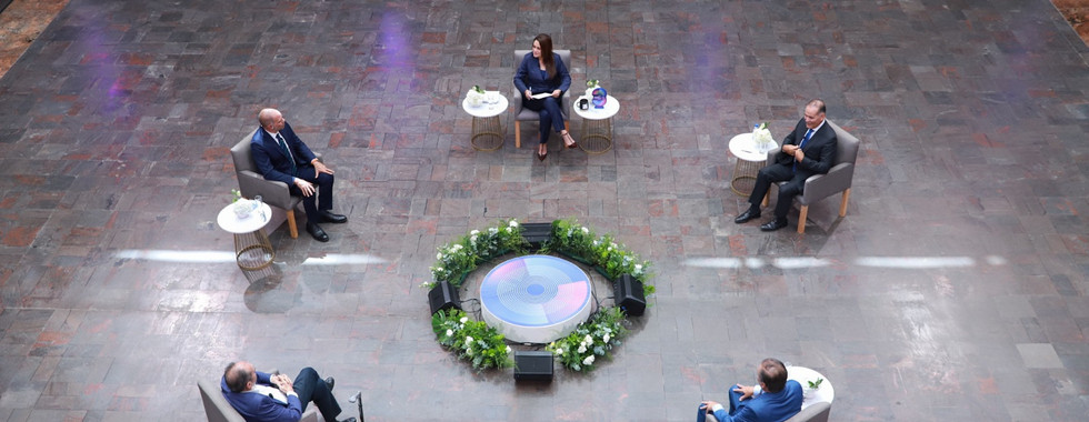 La gobernadora encabezó un conversatorio con Luis Armando Reynoso Femat, Carlos Lozano de la Torre y Martín Orozco Sandoval